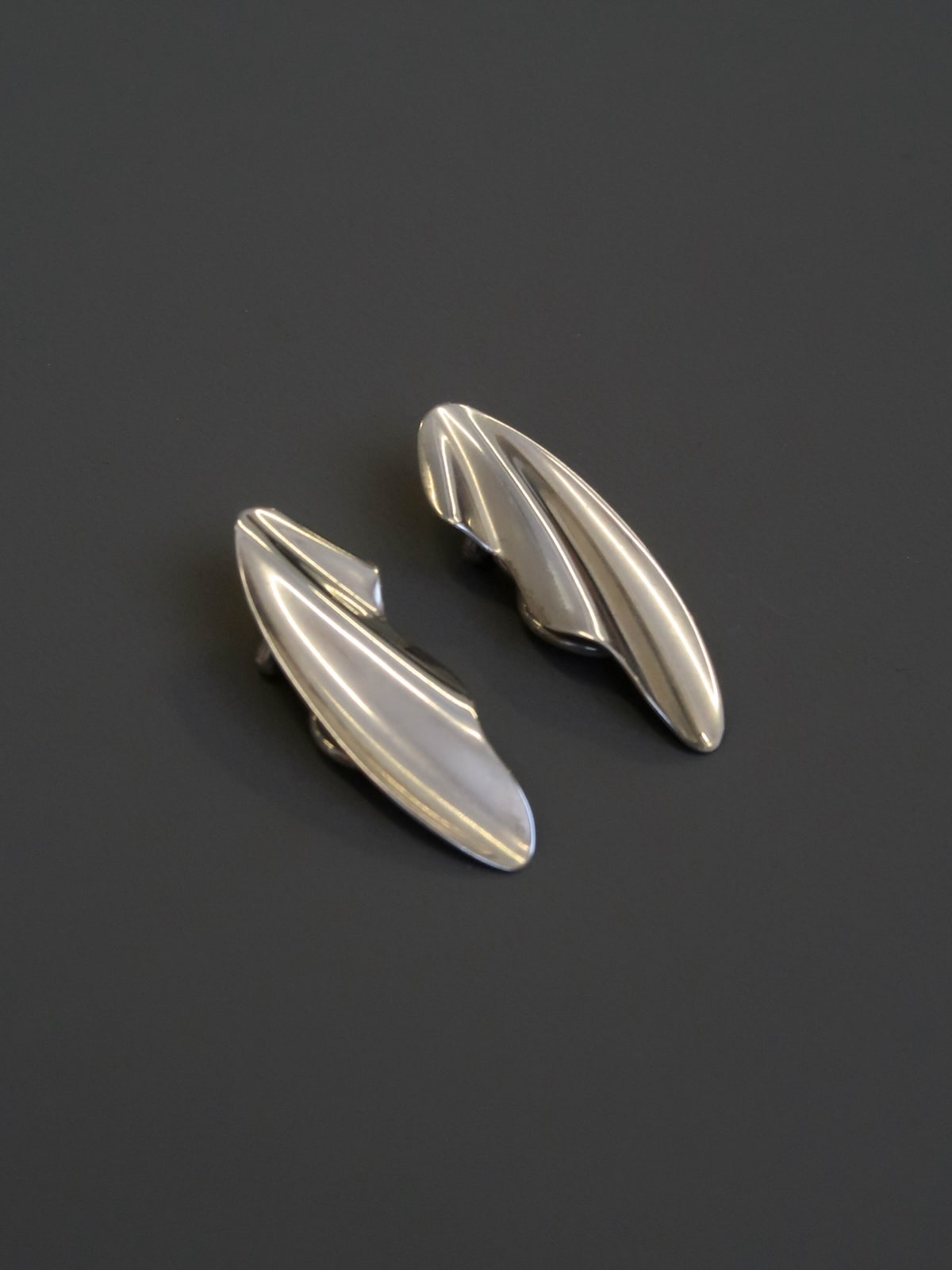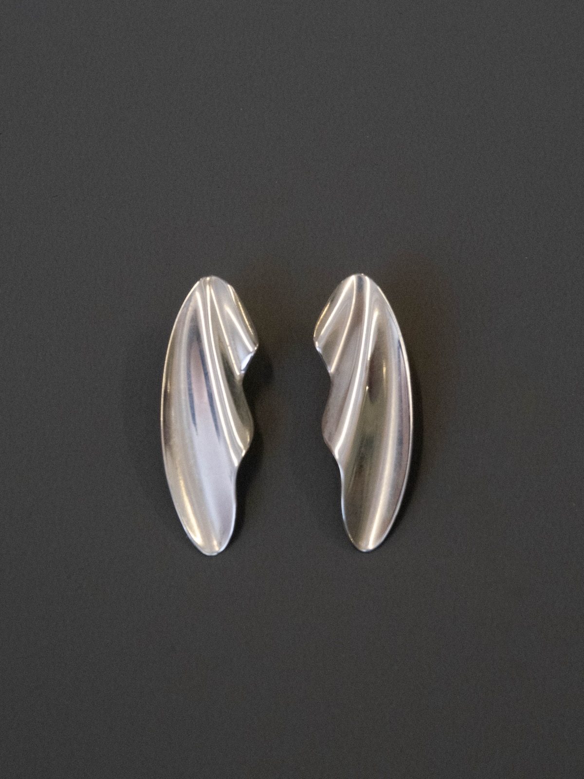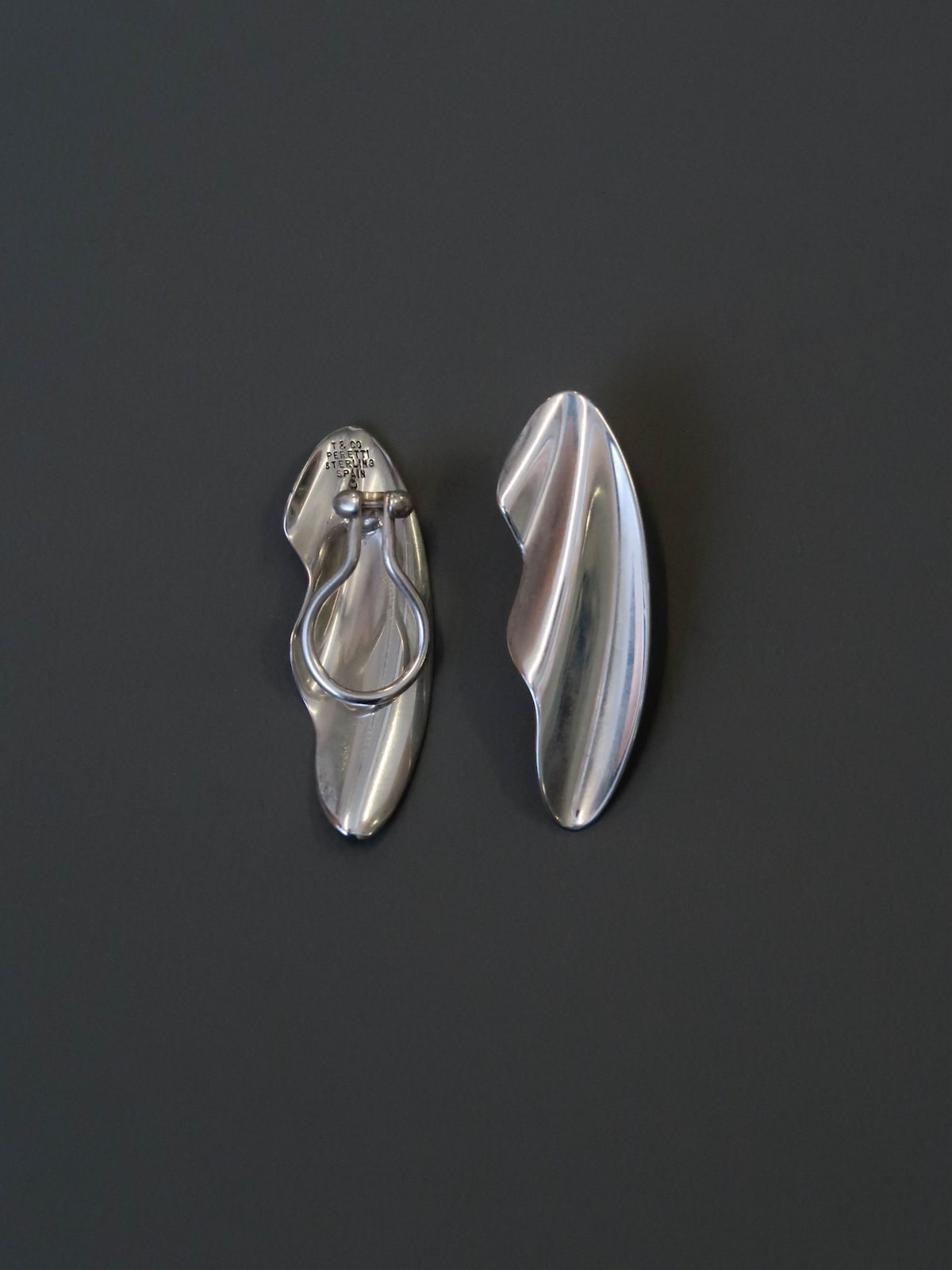 BEAUTIFUL SCULPTURAL PAIR OF WAVY CLIPS-ON EARRINGS, CREATED BY ELSA PERETTI AT THE TIFFANY STUDIOS IN 1982. THESE VINTAGE EARRINGS ARE THE MEDIUM SIZE AND WERE PART OF THE COLLECTION CALLED TIDE WAVE.